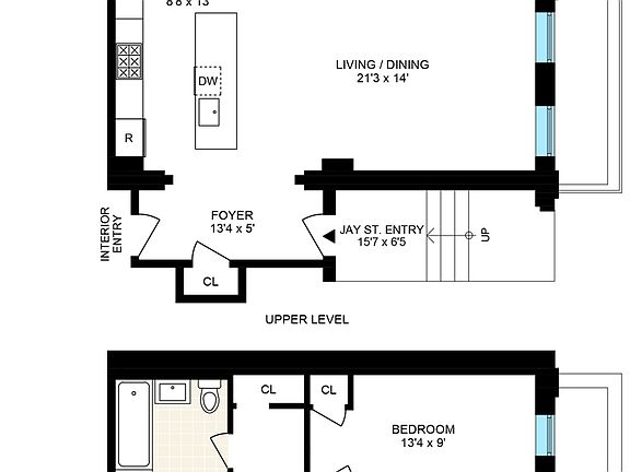 Townhouse B at 168 Plymouth Street is a magazine-worthy, one-of-a-kind home located within one of DUMBO's most coveted conversions by Alloy Development. Original details create the fabric of this home and add depth and character to every inch. There are two discreet entries to the home, one accessed through the classic arched entrance on Jay Street which once served as the horse and buggy loading dock for the building, as well as entry from the building's sophisticated lobby. Located in the historic Brick and Timber building, this 2,067 square foot home is laid out as a gracious duplex creating a townhouse feel within a sophisticated condo building with incredible amenities.