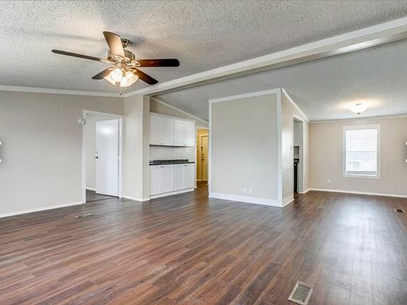 Set on a full acre, this double-wide offers a clean, well-kept interior and plenty of usable outdoor space. The home features an open living area, updated flooring throughout, and a refreshed kitchen with granite countertops, white cabinetry, and a full set of appliances.