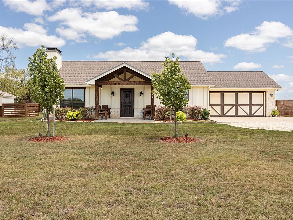 We have multiple offers. Please send best offer by Sunday the 4th at 8pm. This charming modern farmhouse sits on 3 beautiful acres. Home has an open floor plan and stained concrete flooring throughout for low maintenance, vaulted living room ceiling with exposed beam, along with several accent walls of shiplap. The primary suite has dual sinks and a large walk-in shower. Outside you'll find a spacious open patio, 2 fenced pastures, a 24x36 barn with electricity, 2 stalls and a tack room. There is a second barn that is 18x24 that has a 10 ft door opening and 15 ft ceiling perfect for a large truck or RV. The property also has a 60 ft round pen and chicken coop.