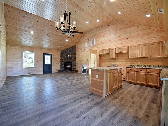 Lake Area NEW Construction 3/2 ZERO step entry, slab. This beautiful home is nestled at the end of a culdesac on a very gentle 1 acre parcel with plenty of room for Play and outdoor enjoyment. The front of the home features a full length covered and vaulted porch with T&G on the ceiling. Back covered BBQ porch as well. The all wood Great Room has high a high vaulted ceiling, gas log rock-faced fplc to the ceiling, open kitchen w/ large work island, gorgeous granite countertops, hickory cabinets. Split plan with Owner suite featuring Granite top tall dbl vanity, tiled custom shower, lots of windows in the bedroom and space for large furniture. The guest bedrooms are spacious and share a bath with a tall vanity and granite top. LVP floors throughout. Laundry room w/ pull down attic stairs. Solid wood interior doors. Low maintenance Smart Siding, spray foam insulation, FIBER Optics, plenty of room to build your future garage. Gated community with common area pavilion and fire pit. $300/ YEAR! Easy access to Lake Nottely, Blairsville, Murphy.
