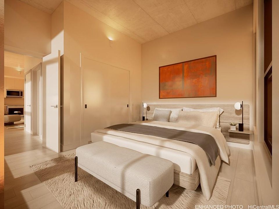 Welcome to Modea, the pinnacle of urban living in Honolulu. This high-floor, corner unit in a newly transformed adaptive reuse building offers a stylish and modern lifestyle with sweeping views of the ocean. The residence features high-end finishes, including quartz countertops, stainless steel appliances, Italian-designed European-style custom cabinetry, a Fisher & Paykel dishwasher, and an in-unit washer/dryer. Modea provides an array of amenities to enhance your living experience. Stay active in the 3,000 sq ft fitness facility, relax in outdoor cabanas and BBQ spaces, and entertain in indoor areas. The building also includes a chic urban co-work space, a resident club room, a karaoke room, a music room, and a yoga/dance studio. Pet-friendly, Modea features a dedicated dog run and doggy bath on-site. Additional conveniences include 24-hour security, EV charging stations, and guest parking. Experience the best of cosmopolitan living with exceptional amenities and unparalleled views at Modea.