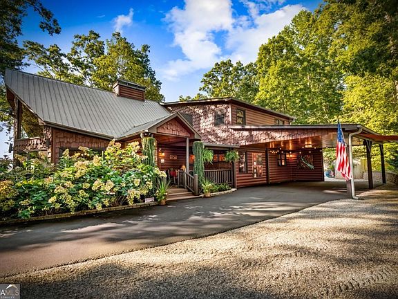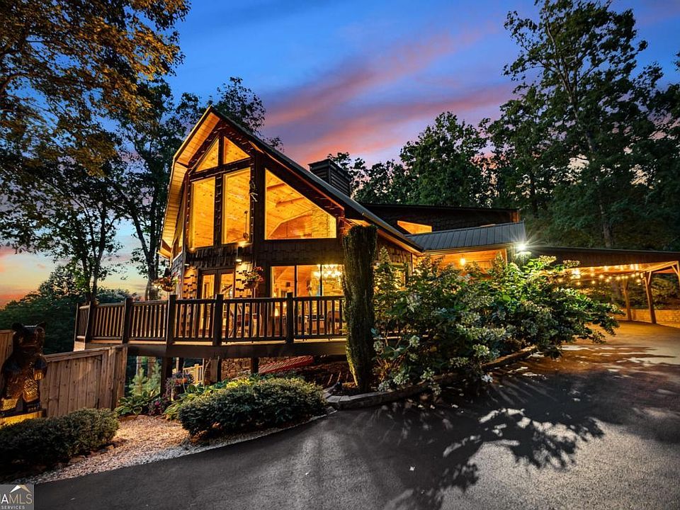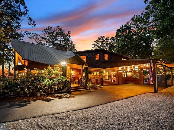 This beautifully designed and immaculately maintained 4 bedroom, 3 bathroom cabin lovingly referred to as "The Lodge" is located on a private gated lot within an exclusive 13-home neighborhood in Morganton, just 10-15 minutes from Downtown Blue Ridge! Perfect for full-time living or a second home, this property offers a seamless blend of rustic charm and modern comfort with a layout ideal for multitudes of entertaining opportunities. This home features an open concept floorplan with large dining room, living room and an expansive 700+ square foot party deck complete with a second outdoor kitchen and fireplace, providing the ultimate setting for gatherings year-round. A spacious courtyard includes a custom firepit and a dedicated area for cornhole, creating an inviting outdoor entertainment space. The primary suite is tranquil and offers a true retreat with its own screened-in porch, breakfast bar, and a separate private deck with a hot tub, perfect for relaxing in total privacy. Additional highlights include, decks on both levels to enjoy the natural surroundings, fully paved roads in the neighborhood and paved drive, a dedicated art or craft studio offering flexible use, and ample parking for guests including a large 2 car carport. This home has been very well cared for including New HVAC unit, new water heater and low maintenance metal roof. It also has a Generac generator, and 1,000 gallon buried propane tank. With its gated entry, private lot, and proximity to Blue Ridge's dining, shopping, and outdoor recreation, this unique property delivers luxury mountain living at its finest. Furnishings are available to be negotiated.