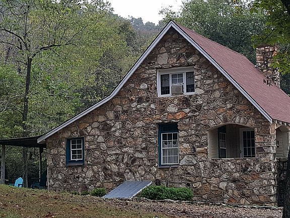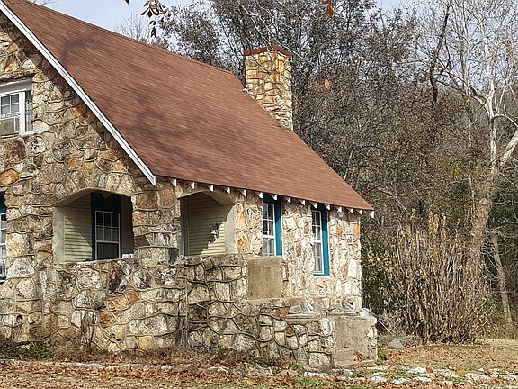 Ten beautiful wooded Ozark acres with two cleared building sites along with this semi-furnished English Cottage-like home 1/2 mile from the Spring River and one mile from downtown Hardy, AR. Included on the acreage is a new 24x32' carport on concrete, a 12x20' Mennonite-built, barn-style lofted storage unit, and a small tool shed. Included in the house are a stove, two refrigerators, one freezer, and three antique wardrobes. The home, remodeled in 2004, features antique stain glass windows, hardwood flooring, and a gas log fireplace. From the front porch, the view is of a creek and mountain. From the back porch, the scene is park-like with grass, hardwood trees, and a seasonal creek. Also, there is a firepit, wood bench swing, and picnic table. The Spring River is a fishing destination and floated by kayakers and canoers year around. Downtown Hardy features antique and craft shopping. This area is very affordable to live and is a beautiful place for family vacations. The ten acres provides space for development or creating a retreat-like experience for family and friends.
