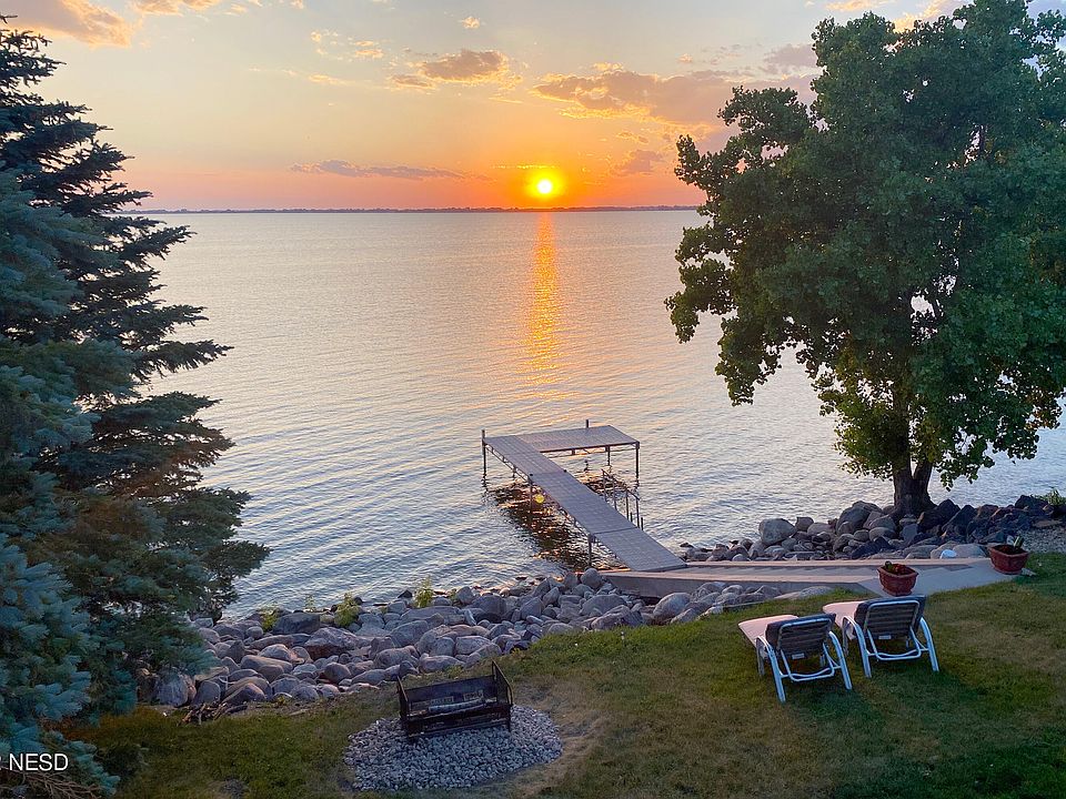 Beautifully updated with high end finishes inside and out! Ranch style home with a walk-out basement on Lake Poinsett! Located on the SE side of Poinsett with 100' of shoreline and a nice private setting with mature trees where you are bound to see the beautiful South Dakota sunsets on the HUGE 57' deck redone in 2022! Updates include Granite countertops, Custom cabinets, Large kitchen island, Stainless steel appliances (Refrigerator 2022), Wet Bar in basement, Asphalt Roof. LP siding, Furnace, AC, Concrete driveway, Garage door and much more. The 4 stall tandem garage is insulated and has spray foam on the roof with a Pellet Stove and ample storage for your lake toys. Need more storage? You are in luck! Build yourself another garage/storage shed on the 100' by 100' back lot!