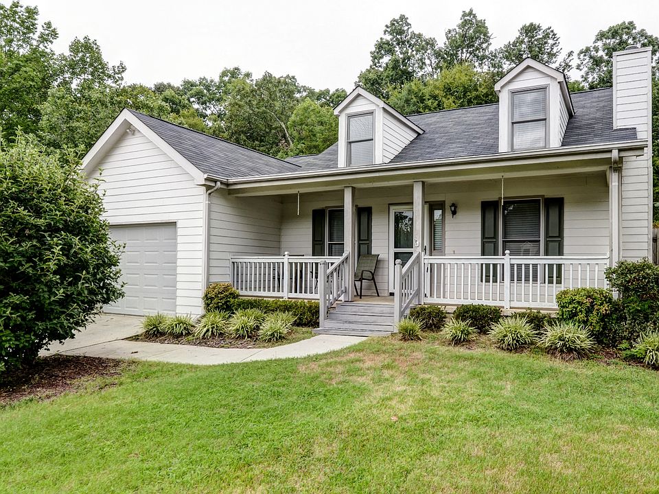 Charming Cape Cod Home w/Rocking Chair Front Porch in Desirable Fort Mill! Open Floor Plan w/Entry, Dining/Great Room Combo, Kitchen, Master Bedroom w/Full Bath & Walk-In Closet + 2 Secondary Bedrooms w/Full Bath All On One Level. Tons of Natural Light w/Cathedral Ceilings + Skylights! Freshly Painted w/Gorgeous New Hardwood Floors (New Carpet in Secondary Bedrooms) + New Kitchen Appliances! Situated Nicely On Quiet Cul-De-Sac w/Fenced Backyard for Extra Privacy! Move-In Ready- Visit Today!