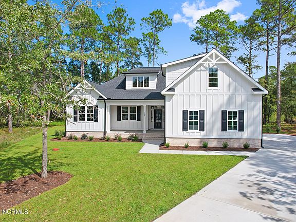 Meet the Cape Hatteras Plan in RiverSea Plantation only 15 minutes to Oak Island or Holden Beach. He's a handsome one for sure. Sleek and modern with a farmhouse charm situated on a private cul-de-sac in a community offering an indoor pool, outdoor pool, pickleball, tennis, workout space, walking trails, community boat launch with kayaks on the Lockwood Folly River, plus RV + Storage in the neighborhood.