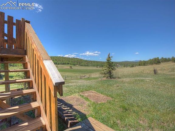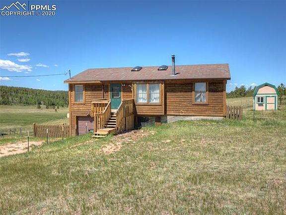 A wonderful opportunity to live or invest in the mountains of Southern Colorado. The backyard setting will make you want to pitch a tent and enjoy the views, mountains, rolling hills and fresh clean air. This home is waiting for you to turn it into your dream home as you already sit in a dream location. The main level features 2 bedrooms, 2 full baths and a 3rd bedroom that could double as a home office or reading room with its own 'built in library.' The family room has a warm wood burning stove and plenty of space. The kitchen has a walk in pantry to expand your storage opportunities. And the walk out basement is filled with potential. You have plenty of room to revamp and set up a second family room and bedroom or keep it all as storage. Lots of workable space. You can walk out from the basement to the back or side yard and this is where the magic happens. Stand outside for a few minutes and the mountains will have your heart. And from a practical stand point, you have a big yard for the family, a 'like new' Tuff storage shed and views for miles.