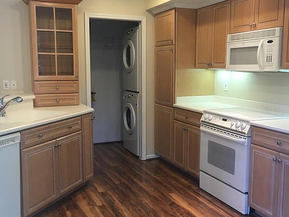 Open floor plan with beautiful kitchen stackable washer and dryer