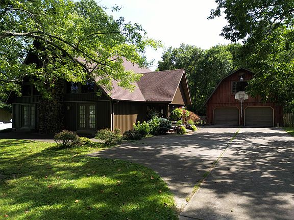Home offers 3 Large Bedrooms, 2 Baths, Sunroom, Large Kitchen, Detached Garage with Unfinished Bonus Room, Approx. 6 Acres, Hardwood, Tile, Fireplace, and 2 Septic Tanks on Property.