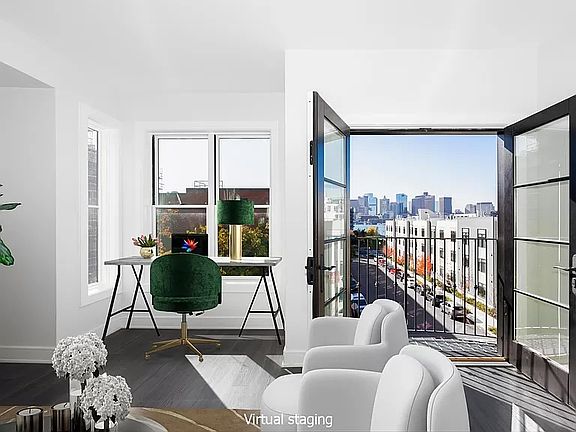 Luxury new construction unit with gorgeous waterviews of the Boston skyline! This 2 bedroom, 2 bathroom unit is available now. This unit has a large open floor plan with a Juliette balcony and gorgeous water views of the Boston Harbor. Features and amenties for today's lifestyle include, stainless steel appliances, high end finishes and sleek modern cabinetry, large windows and hardwood floors. The master ensuite also includes a private back deck. The unit has central air and in-unit laundry. This is an elevator building located just steps to Maverick Station and Piers park, water taxi to the Seaport, easy access to Logan Airport and walking distance to all the wonderful restaurants East Boston has to offer! Tenant is responsible for utilities. No smoking allowed. Pets negotiable.