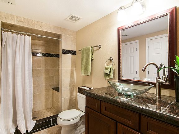 Move-in ready home with 4 beds, 4 baths, and a 3-car garage on a quiet street. Beautiful entry with leaded glass doors and high ceilings. Newly refinished hardwood floors throughout the main level. Main floor study with French doors and adjacent full bath. Open floor plan with lots of light. The large family room has a fireplace and flows into the kitchen. The kitchen features slab, double oven, a huge walk-in pantry, and a large breakfast nook. New carpet upstairs. The master suite features a 5-piece bath, slab granite counters, tile floors, a walk-in closet, and a bonus closet. The fully finished basement provides a rec room, wet bar and wine storage. A 4th bedroom, plus a beautifully appointed large bath with new tile shower and vessel sink complete the basement level. The backyard is ideal for entertaining! The stamped concrete patio with built-in lights, a combo wood burning and gas fireplace structure, built-in planter boxes, and grill make parties a snap!