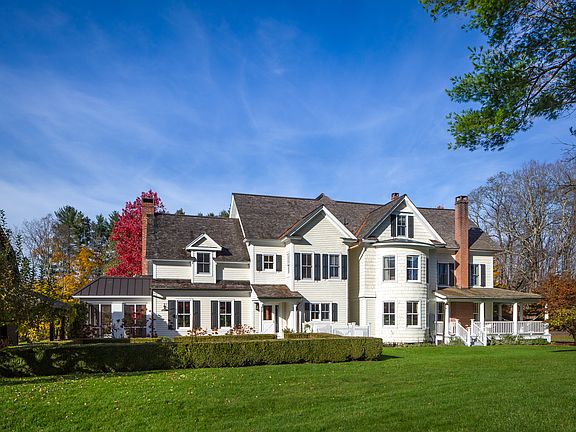 This offering represents the enviable combination of a beautifully restored 1880 Antique on 60+ picturesque acres in a superb location. Land. The topographical diversity of the property cannot be overstated. There are expansive lawns, formal cutting and ornamental gardens, an herb and vegetable parterre, woodlands, meadows, an orchard, stone fences, a spring-fed pond and Moore Brook, considered an ecological treasure, runs through the property. The 50' heated gunite pool is idyllically set adjacent to gardens and the orchard. Woodland trails for horseback riding, hiking, or cross-country skiing have been established. Location. Taconic Road, home to many other fine turn-of-the century estates, runs parallel to the western shore of Washinee Lake, one of Salisbury's famed Twin Lakes. To the west are magnificent views of the distant mountains. It is in close proximity to Salisbury Village, O'Hare's Landing Marina, the Appalachian Trail, the cultural events in the Berkshires and only 100 miles north of Manhattan.Residence. The current owners, an award-winning builder/designer team, realized the potential to go beyond restoration and have painstakingly expanded, improved, and updated this house to retain the classic elements and design while enhancing it with systems and fixtures to ensure its future endurance. The project spanned 2 decades and has delivered a perfect outcome. The front of the house is graced with a welcoming wrap-around covered porch. On the main level are the gracious entry hall with stairway, living room with fireplace, dining room with a bow window and built-in cabinets. Between the dining room and kitchen is the butler's pantry/wet bar. The kitchen features a soapstone island, farm sink, Thermador 6-burner rangetop, Sub-Zero refrigerator, wall ovens, Bosch dishwasher, decorative tin ceiling and pantry. It has doors to the terrace and front porch. It opens to a casual dining area with a second stairway and the family room with fireplace and built-ins. French doors access both the large screened-in porch and the stone terrace. The western views from the porch and terrace are stunning. Second level: The master suite has a fireplace, 2 walk-in closets, French doors to a private porch with mountain views, coffee bar, bath with dual vanities, soaking tub and steam shower. There are 3 additional bedrooms and 2 baths, study and laundry room. Third level: 2 bedrooms, 1 bath and storage area. The lower level has been partially finished as a media room and half bath. The interiors feature extraordinary details -- crown moldings, antique fireplace mantels, wide plank flooring, 9' ceilings, fluted board/corner block window and door casings, custom light fixtures. The oversized 2 over 2 Thermopane windows provide interiors with abundant natural light. Updated systems include Hydro-air heat, zoned central air-conditioning, water softener, full-house generator, security, copper plumbing.Other buildings. Garage with 4 bays, one heated. Second floor is unfinished. Stable/Garage with 3 stalls, wash stall, feed, room, tack room, drive-in hayloft, half bath and 2 garage bays. Second floor unfinished. Surrounded by paddocks, dressage ring, a cross-country course, grass jump field and trails. A cabin with woodstove and screened-in sleeping porch is sited in the wooded portion of the property.This exceptional property is a wonderland of divergent yet complementary characteristics. A grand country house. Equestrian Facility. A fishing pond stocked with large-mouthed bass. A gardener's delight. Woodland trails. Rustic cabin. A place for every mood, interest, discovery.