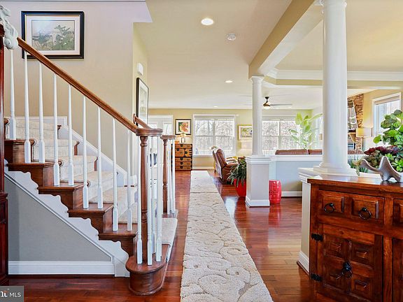 Every detail in this home is thought through and meticulously finished with no expense spared. Original owners customized main level to create an inviting open floorplan - unlike any you'll see in Brookfield. The space is open but has definition thanks to some very tasteful architectural details - columns, a tray ceiling and partial wall. There's a complete geo-thermal system to cover heating, cooling and hot water. So utility bills are very low. There's two large master suites - one on the main level and another on the upper level which has a sitting room - both have luxurious private baths. There's top of the line fixtures and amenities throughout the house. The kitchen has a large island, granite counter tops, and is open to living areas - the perfect gathering place. The dining area opens to a trex deck. The basement is finished with a bedroom, bonus room, full bath and large rec room with double doors that open to an extensive back patio with stone pavers. Home has 6 bedrooms, 4.5 baths, a total of 4955 sq ft, and sits on .6 acre with a fenced backyard - beautiful black iron fencing. There is a sprinkler system that covers the entire yard. The security system is hard wired with outside cameras. The lot backs up to a permanent wooded area so you are assured of that privacy. Tributary Trail is a cul-de-sac street with the higher end homes of Brookfield. There is a Potomac River access park for the residents. This is a great location - minutes from the Maryland line and easy access to several large metro areas. Be sure to click the 3D tour so you can walk through and explore the house.