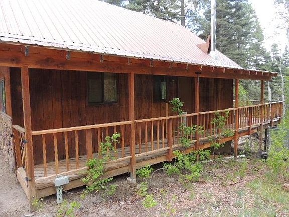 Located in Thompson Ridge Estates, this lovely wood cabin is your full-time home or your part-time escape. 1.3 acre lot. Enjoy views of Redondo Peak from your back yard. New wood flooring and bathroom remodels were done in 2012. Also included is an enormous 30x24 detached garage/workshop with fireplace.