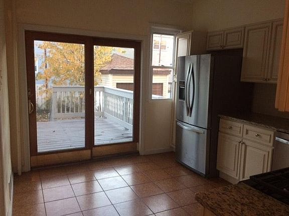 Totally renovated 2 bedroom/2 bath apartment on first floor of 2 family house. Located on a quiet dead end block with view of the harbor from your front porch. Large deck looks over lovely fenced in backyard. Sunshine streams through the unit. Brand new stainless steel appliances, dishwasher, granite counter tops, porcelain floor in the kitchen. Sliding doors open out to the deck for al fresco dining. Full dining room with marble floor, bright living room and bonus rec room. New shiny hardwood floors. Central air conditioning. Built in garage with direct access to the house. Hook ups for washing machine and dryer available for extra charge. Why buy when you can have it all here! Owner pays for water and sewer. Tenant pays heat, hot water, gas, electricity.