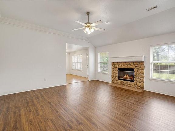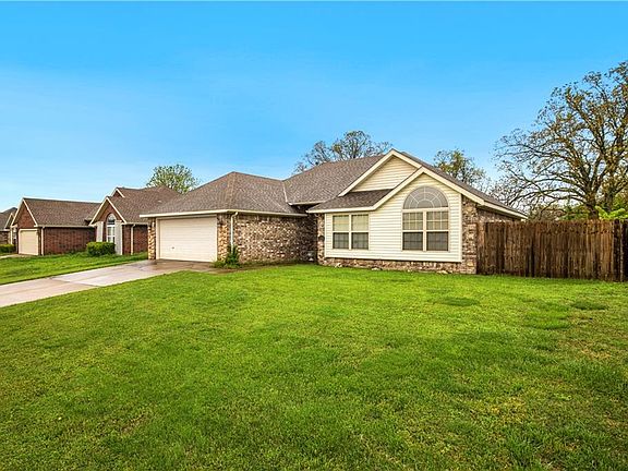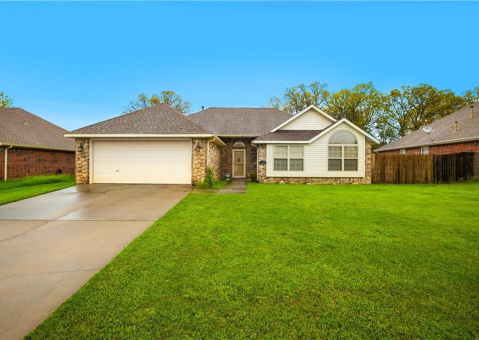 Take a deep breath and enjoy the bright airy open-floor plan that this well maintained 3 BR/2 BA home has to offer. Features large open living/dining room area with high ceilings, wood laminate flooring and gas fireplace. Eat-in kitchen has ample counter space, cabinetry, and pantry. Spacious bedrooms, laundry room and large master w/walk-in, master bath w/whirlpool. Also offers large privacy fenced backyard w/large patio, for the perfect space to enjoy the outdoors. New roof in 2020. Located between Thompson/Robinson/Don Tyson and near groceries, restaurants, schools, businesses and just 7 mins from Lake Fayetteville. Don't miss this great property.