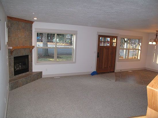 Newer 3 bedroom, 2 bath home (1624sf+/-) Fireplace, utility room with cabinets and sink, master on the main level, 2 large bedrooms upstairs have nice separation with a full bath. Walk-on closets, tile floors,carpeted in living area. Open great room style with dining area is a comfortable floor plan. Two large blue spruce trees offer shade and privacy, 2 car garage/alley access. Finshed storage above garage has natural light. NON-SMOKER/NO-PETS $1100+ Deposits Avail July 5