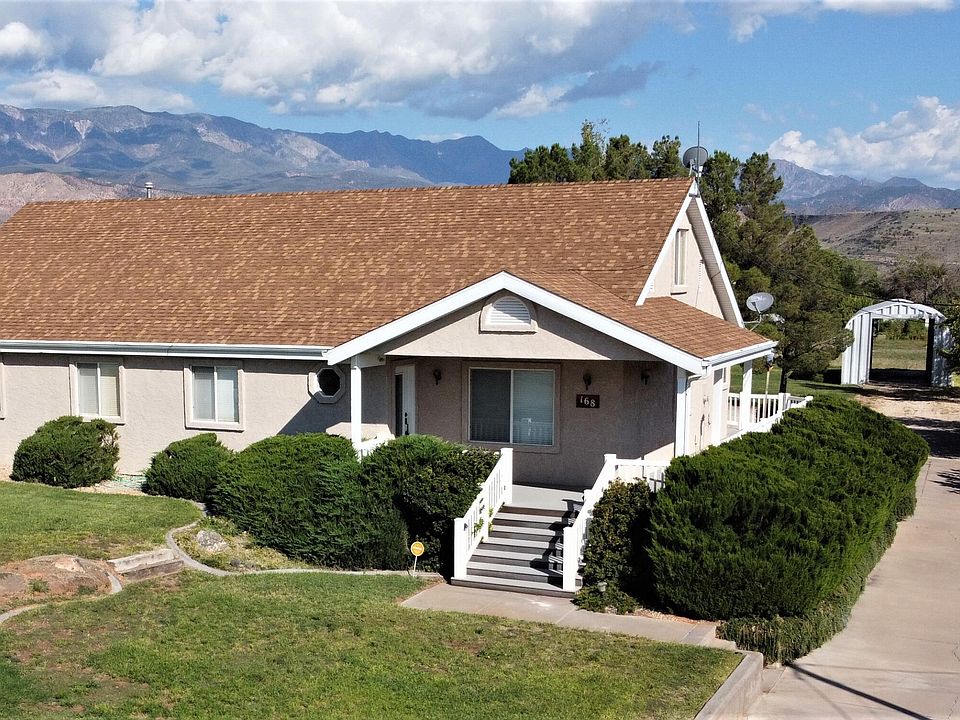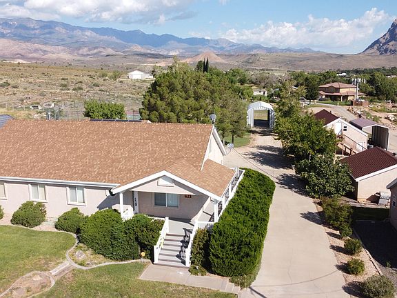 One acre and plenty of parking for all your toys. Live your best life in Toquerville. Peaceful, friendly, country living just minutes from St. George, Zion National Park and countless recreational attractions. 4 car garage/shop. Covered RV parking. VIEWS! Large, wrap around, composite deck with ramp. Excellent office and built-ins. OWNED SOLAR makes for low electric bills. Lift chair to 2nd floor This home could likely be modified to accommodate a mother-in -law apartment or a nightly rental. Verify requirements with Toquerville City. The listing Broker's offer of compensation is made only to participants of the MLS where the listing is filed. Buyer and agent to verify all information.