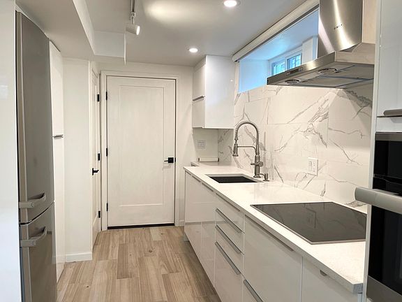 Brand New Renovation of a 1 bed 1 bath located on the lower level of this wonderful multifamily located in Newton Centre on a quiet street. Gorgeous high-end kitchen with Miele appliances including dishwasher, disposal, microwave/oven, cooktop, fridge, and excellent cabinet storage. Radiant heated floors throughout. Electric fireplace with the option to allow or disallow heat. Miele washer and dryer. Bedroom closet with custom built-ins. French Doors to the bedroom to be installed. A patio area near the entrance for warm weather enjoyment, extra storage, and 1 off-street parking spot is included. Only a few minutes to the Green D Train and all the shops and restaurants Newton Centre has to offer. The owner pays for water/sewer. The tenant is responsible for electricity and cable/internet. No Smoking. The landlord takes first and Security.