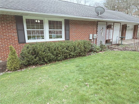 Sitting on the top of 5.66 acres, this charming 3-bedroom, 2-bathroom brick ranch offers serene country living with a stocked trout stream running through the backyard. Enjoy stunning views from the living room's large windows overlooking the tranquil creek. The property features a spacious 2-story garage, perfect for storage or workshop space. Recent upgrades include a newer furnace, central air system, and hot water tank, ensuring comfort and efficiency year-round. The basement boasts a generous bonus room ideal for entertainment or relaxation, along with a convenient laundry area, gym space, and utility room. Whether you're unwinding by the creek, exploring the expansive grounds, or enjoying the modern amenities indoors, this property offers a peaceful retreat for nature lovers and outdoor enthusiasts alike.