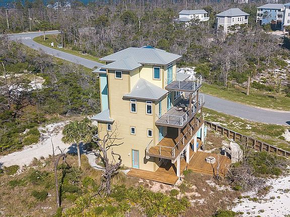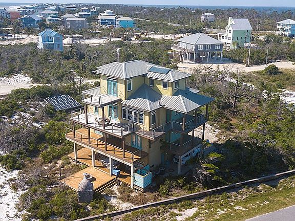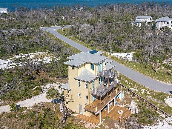 Exquisite custom built masterpiece on North Cape San Blas with Gulf views from every level! By far, one of the finest homes built on all of CSB. LEED gold certified, Solar powered with 5 kw battery backup for power bills under $100.00/month. Materials have been brought in from all over the globe. Brazilian flooring, decking, handmade copper tubs, sinks from Mexico, artisan oyster shell and recycled glass countertops complement the cultivated palm cabinetry, commercial stainless appliances, huge butlers pantry with 150+ bottle wine cooler, floor to ceiling glass windows and doors overlooking gulf views, custom sea life stair railings, spectacular master suite with handmade copper soaking tub, heated tile floors, bidet, dual vanity sinks, elevator, outdoor authentic European style pizza oven and fire pit, 4 bedrooms, with additional office/library and hobby room, workshop, garage, wrap around covered porches with green egg included! Elaborate outdoor entertaining area with shower, fish cleaning station and so much more. This home delivers everything for even the most discriminating buyer. Too many finer details to list. Check out photos. Showings are arranged through property manager. Must have pre-qualification letter or proof of funds to view. Call Kyle Cunningham at 270-839-4699 for additional information and arrange a showing.