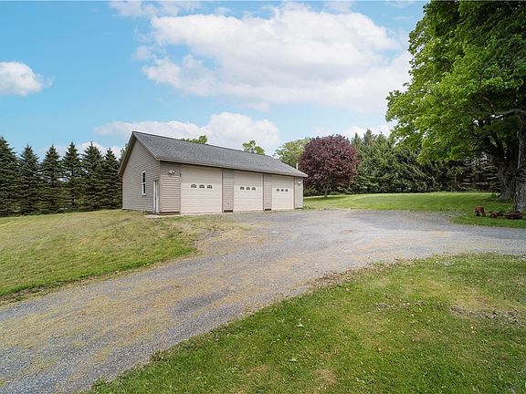 This amazing property embodies the allure of an old style farmhouse colonial with modern amenities on nearly five acres of land. As you arrive, you'll be greeted by the stately presence of the home, complemented by the convenience of a three-bay garage that can comfortably house up to six vehicles. Equipped with both heat and electricity. Butternut Creek meanders through the far end of the property, creating a soothing atmosphere. Heidi, a beloved horse that calls this place home can remain with the property should the new owners desire. Imagine warm summer evenings gathered around the crackling fire pit area, creating cherished memories with loved ones. Stepping inside the residence, you'll discover four inviting bedrooms, offering ample space for relaxation and rejuvenation. Two full updated baths ensure convenience and comfort for both residents and guests, accommodating the needs of a modern lifestyle. The kitchen is large and spacious, with a great view of Heidi roaming the pasture. The heart of this home lies within the spacious great room, providing the perfect setting for gatherings and entertaining. Welcome home! *Offer deadline set for 5/22/23 @6 pm*