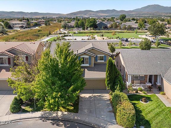 Beautifully Upgraded Home in South Meadows! Tucked away on a quiet cul-de-sac and backing to Comstock Park, this highly desirable floorplan offers 4 bedrooms (including one on the main level), 3 full baths, and an upstairs bonus area. Recent upgrades include newer carpet, luxury vinyl flooring, modern gray tile in the kitchen and baths, fresh interior paint, updated bathrooms, and a fully remodeled kitchen with granite countertops. The open-concept family room features a cozy fireplace and flows seamlessly into the kitchen. Additional highlights include ceiling fans, stylish light fixtures, and low HOA fees. Ideally located across from the park and just minutes to shopping, dining, and quick freeway access.