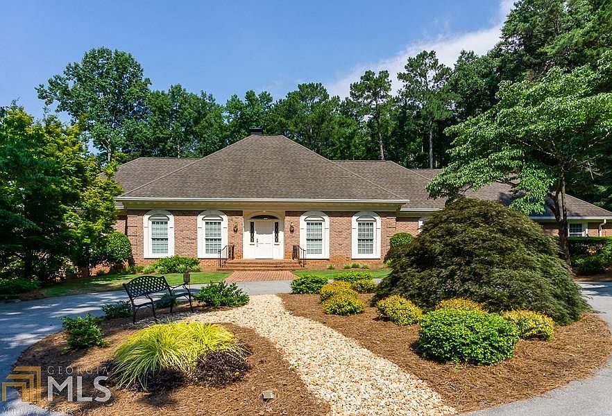 Stately All Brick Smoke Rise Ranch-Style Gated Estate Home with Master on Main and Finished Terrace Level on 3.5 Acre Cul-de-Sac Lot! Marble tile foyer leads to 2-story great room w/ wonderful 2-story wall of picture windows. Large master w/ walk-in closet and private master bath with whirlpool tub. Relaxing sun room. Lower level features big rec room or family room w/ walk-in wet bar plus bedroom, full bath, exercise room & workshop. 2 bedrooms w/ private full baths plus walk-in attic storage on upper level. 3-car garage. Detached storage garage. Beautiful landscaping. Smoke Rise Country Club neighborhood.