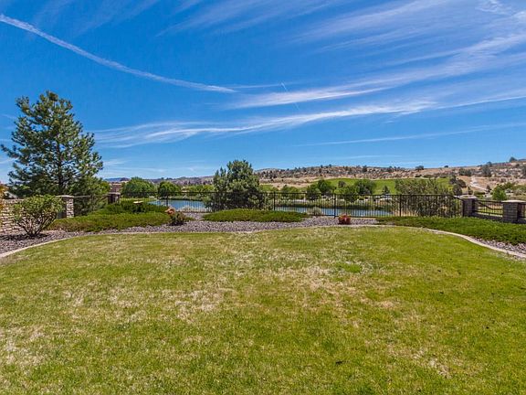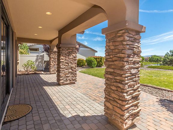 ENJOY living in Lakeside & relaxing on extended paver cov'd patio overlooking VIEWS of the Prescott Lakes golf course, ponds, cov'd bridge & the Granite Dells. Mature plantings in walled & view fenced backyard w/grassy area for your furry friends [.23 acre]. Perfectly sized [2003sf] 1 level split 3Bdrm, 2Bath ''Cambridge'' Great Rm plan w/nook + Dining or Den bonus space. Special features incl floor to ceiling stone fireplace, granite counters, raised panel wood cabinets thru-out, 8' doors, wood-like laminate flooring, window treatments, ceiling fans, 4' extension on 2 car Garage [576sf], paver drive & walkways & dramatic double arched front Entry, concrete tile roof +++ Fantastic Prescott Lakes Amenities & Restaurant + Private Golf. THERE ARE SO FEW VIEW PROPERTIES AROUND - DON'T MISS OUT