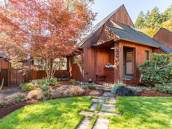 Incredible Custom NW Contemporary in SE Eugene! Vaulted & wood-lined ceilings, hardwood floors, French doors, walls of windows & multiple skylights allow for maximum enjoyment of the gorgeous setting. New interior paint, updated kitchen w/ granite, main level master ensuite, sunroom, office, fireplace, mudroom, updated laundry w/ 1/2 bath & marble floors. Private landscaped yard is fully fenced w/ garden, detached garage, decks, sprinklers. Excellent condition & location, close to Amazon Trails.