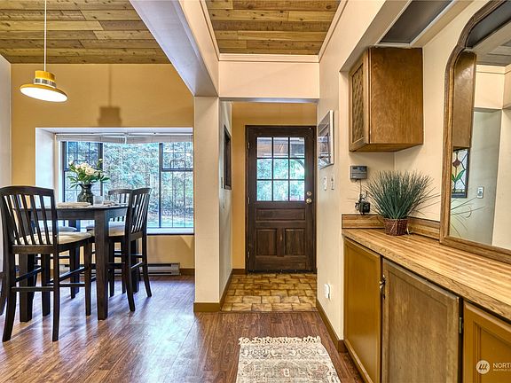 Offered for the first time! If you are looking for a quality built home, look no further! This charming cabin is tucked into the woods at the end of a dead-end street. Post-and-beam construction features a well-designed layout with the primary bedroom on the main floor and four additional rooms upstairs. Vaulted ceilings and a wood-burning fireplace is perfect for cooler days. The bright, updated kitchen has plenty of cabinet space, with an eat-in area overlooking the front yard with mature trees. The level yard features a fire pit - ideal for outdoor gatherings. And guess what? There's even space for an RV, making weekend getaways a breeze! Come experience the Point Roberts lifestyle.