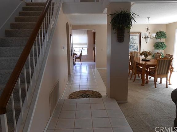 Fairview Estates popular plan 5 on the market! Double door entry to open floor plan on lower level. Tile flooring continues from entry thru out kitchen, half bath, and laundry area. Formal living room with ceiling to floor fireplace and crown molding. Sliding door opens to side yard patio off formal dining room. Kitchen has been updated with recessed lighting, granite counters and stainless steel appliances. Lots of cabinets and drawers for storage. Breakfast nook overlooks backyard and spa. Spacious family room off kitchen with second fireplace and sliding door to patio/spa. Neutral paint colors and carpet/tile colors thru out. Sky light brightens landing and storage at top of stairs. All bedrooms are upstairs. Double door entry to over sized master bedroom with beamed vaulted ceiling. Large walk in closet and dual sink vanity with corian counters in dressing area. Roomy secondary bedrooms and another full bath on this upper level. And an extra value in this floor plan is the upstairs bonus room with ceiling fan and wet bar. Perfect exercise room or playroom. Enjoy the spa in the backyard that overlooks the old Corona National Golf Course now a green belt area. No mello roos and no HOA! New covered patios, new built ins installed in bonus room, new granite in all bathrooms, new sinks, new master shower upgrade, kitchen new cabinets and granite. Freshly painted ceilings (no more popcorn ceilings). New double pane windows installed upstairs.