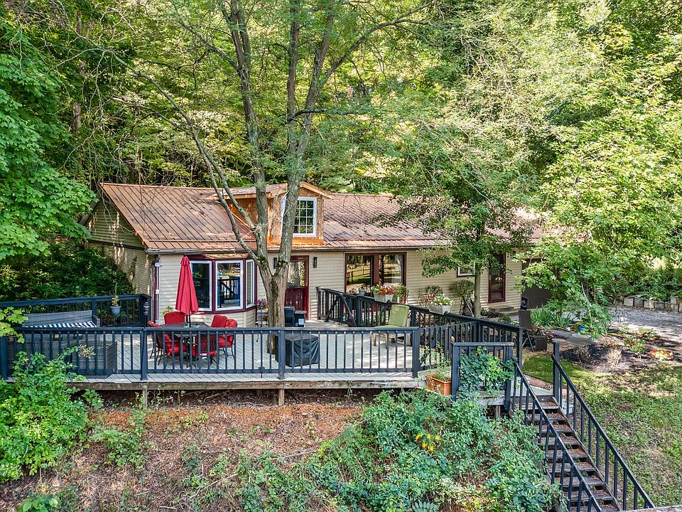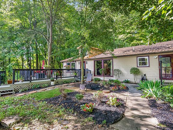 If you're tired of city hassles, but love the conveniences, come see this 3 BR/2 BA ranch home on nearly 5 acres just minutes from downtown Delaware. This unique ''earth-sheltered home'' is situated on a heavily wooded hillside and offers 2000+ sq. ft., an expansive deck, metal roof (new 2017), large fenced in area ideal for pets/animals, firepit area great for Fall campfires, gorgeous stream, large outbuilding w/electric/concrete floor, oversized 2 car attached garage, 18 X 32 swimming pool, and 2 storage sheds.