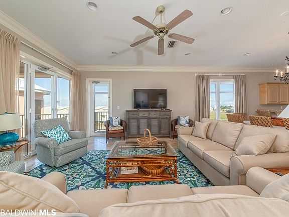 Escapades North Top is your own private resort on the Gulf, far from the crowds. This unique set up is two separate buildings with four total units, two units on the top and two units on the bottom. North top includes; 4 bedrooms and 4.5 baths with bunk beds in the hall this unit allows everyone to stay together. Covered balconies a private pool with bridge & waterfall a boardwalk to the beach. A kitchen made for entertaining w/commercial grade appliances, granite counters, double ovens and travertine floors. Great rental. Across the street is Fort Morgan Marina offering Dock store, and slips.