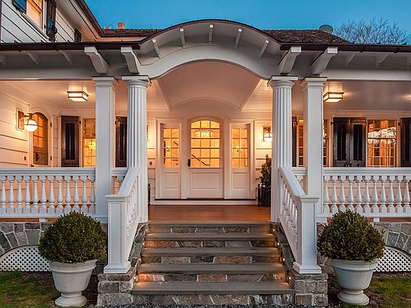 "Uplands" a 1914 monumental estate sets way up on Hillside on 4.5 lush green acres at the end of a private cul-de-sac in a coveted, picturesque area of Greenfield Hill with distant water views. Recently renovated & restyled with care and precision for nearly 1.5 million bringing together old world charm with new world vitality. A gracious, grand canopied entry greets you with elegant archways, 9.5 ceilings and Walnut flooring in a Herringbone pattern lthat leads to the sun-filled two sectional living room with a marble fireplace, baby grand piano and french doors opening to a blue stone/brick patio for extended indoor and outdoor entertaining. A hand painted mural is in its original glory on all four walls of the handsome dining room which depicts the original family's journey from England to the New World making for interesting dinner conversations. A cavernous, new gourmet kitchen offers kitchen harmony with its coffered ceiling, Walnut center island, Calcutta gold marble counters, farm sink, breakfast room, custom cabinetry and high end appliances. There is a modern day unique butler's pantry and repurposed icebox cabinets for storing everyday items at your fingertips. Separate but near the kitchen is a custom designed work station for working at home. A wonderful family room offers audio sound for game night. Second floor landing has a master suite and sitting area with built ins for an abundance of storage space plus four more en-suite bedrooms. SEE remarks below