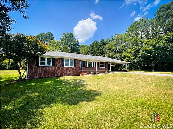 This 3BD/2BA 4-sided brick Ranch is located in a country setting convenient to Butler's Crossing, downtown Watkinsville and Athens. It has new carpet, washer & dryer and Kitchen appliances. Property sits on 1.5 acres with a storage shed that has electricity and an attached 2-car carport. New Indoor/Outdoor carpet has been installed in the Sunroon!