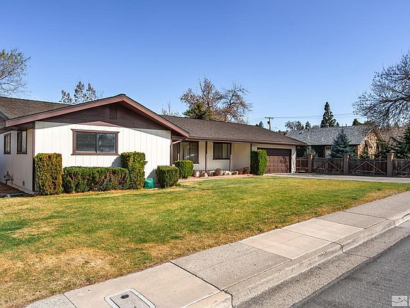 In the heart of Old Southwest Reno, this inviting single-story home sits on a generous .26-acre lot. Inside, fresh interior paint and new modern gray carpet complement the timeless charm of the home. The spacious formal living and dining rooms offer seamless flow into the kitchen and family room, where wood flooring and a wood-burning fireplace with a brick mantle add warmth and character., The thoughtfully designed kitchen features a welcoming breakfast bar, two sinks for convenience, and a professional-grade oven and range hood—a dream for any home chef. The bedrooms are generously sized, with the primary and second bedrooms featuring walk-in closets for ample storage. This home boasts an expansive backyard with a large 31’ x 15’ concrete patio, a lush field of grass, and mature landscaping, creating the perfect setting for outdoor enjoyment. An oversized two-car garage with a built-in workshop adds extra space for storage, projects, or hobbies. Situated near all zoned schools and just minutes from the energy of downtown Reno, this home offers the perfect blend of tranquility and accessibility. Don’t miss this opportunity to own a piece of one of Reno’s most sought-after neighborhoods!
