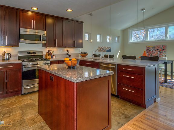 This is the one you have been waiting for! Completely remodeled, light & bright contemporary ranch close to parks & bike paths. Open floor plan w/vaulted ceilings perfect for everyday living & entertaining. Eat-in kitchen w/quartz countertops, stainless, 42" cabs, island, tons of storage. Main level wood floors, stacked stone fireplace w/built-in bench. 3 bedrooms w/walk-in closets. Newly remodeled basement w/9' ceilings, new carpet & paint, laundry rm. No flood damage