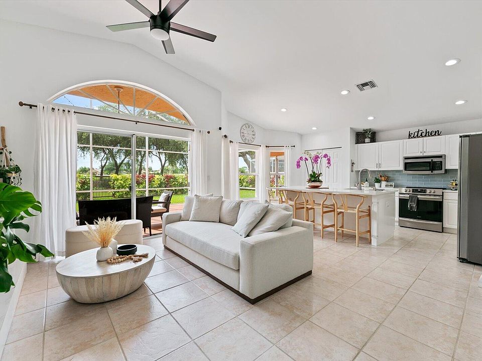 This stunningly updated Lakefield home sits minutes away from the Wellington International Horse Show, and just a short walking distance from the Wanderers Club. Located on hole 8 of the Wanders Club golf course, this home boasts vaulted ceilings, and offers a light, bright, open concept living space. Updated interior features include; removal of popcorn ceiling, new flooring throughout the bedrooms, and a newly renovated contemporary kitchen with an oversized island. In addition to its interiors, this home has a lovely outdoor screened patio and wrap around yard perfect for your four legged friend. This property is a must see gem in the heart of Wellington!