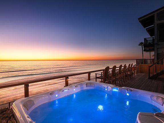 Experience the ultimate beach getaway in this luxurious four-bedroom, three-bathroom single-level home. Perfect for large groups, two rooms feature comfortable bunk beds, allowing the house to sleep 10 guests comfortably. Enjoy the breathtaking ocean views from the expansive private deck, which is an entertainer's paradise. The deck boasts a soothing hot tub, a stylish outdoor lounge area, and a cozy fire pit, all designed to maximize those unforgettable sunsets. The deck leads directly down to your private beach access, offering some of the best surfing in town. The property is equipped with central heating and air conditioning, an attached garage, and a secure perimeter security gate. The home is also updated throughout and has a richly appointed nautical theme.