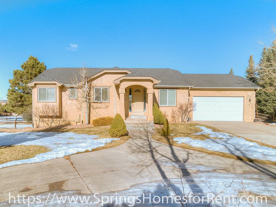 Great Space! This 5 Bedroom, 3 Bathroom, 2 car garage rancher is located on a corner lot with views and large backyard in Monument. This home has a large open floor plan with a formal dining room, office or 5th bedroom and a large family room complete with a gas fireplace that walks out to a brand new deck with views galore. The large eat in kitchen has stainless steel appliances, maple cabinets, hard surface counters and has a large island great for entertaining. The master bedroom rounds out the main level living and has an attached 5 piece ensuite, walk in closet and access to the back deck. The fully finished basement hosts 3 additional bedrooms, a full bathroom, laundry area and rec space. This home is close to County Line Road and easy access to the 1-25 for an easy commute to Denver or Colorado Springs.