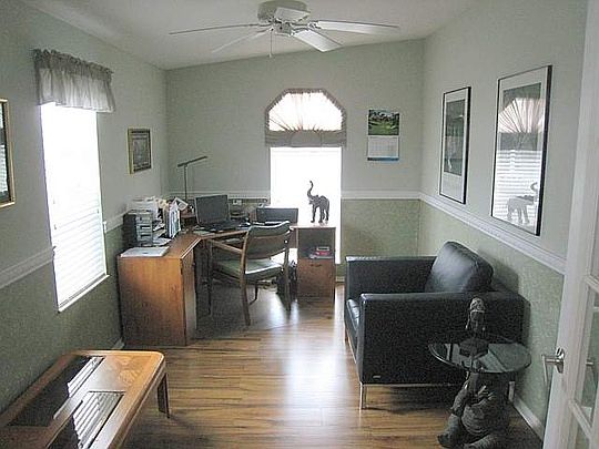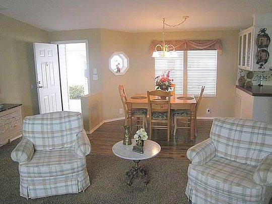 This is one of a kind model home. It has 2bed 2bath with a den. Trey ceiling in living room with upgrades fan. Will be fully furnished and decorated very nice. Newer dishwasher and fridge. Has newer carpet and laminate floors. Fresh paint has a nice rear screen porch. Very large carport with 2 car garage. All concrete finished with stamped concrete. Shows real well. SB1637 Over 700 homes available at https://www.fourstarhomes.com