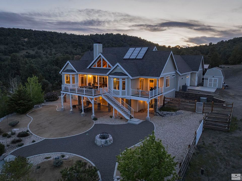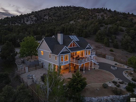 Paradise Found! This Off The Grid Luxury Home is the Crown Jewel of the V/C Highlands Perfectly situated on 10.73 acres. Gourmet kitchen with Viking 6-burner range, Hickory Cabinets, huge Master Suite with dual closets on the main floor, a 2nd Jr Master suite downstairs. 4.5 bathrooms, Game room with wet bar, slate & wood flooring, soaring ceilings, oversized 5+ Car garage & covered RV Parking & Multiple Deck and patio with Spectacular Never Ending Views. Amazing Solar array. Less than 20 min to 580/395., Welcome to Paradise... Luxury Living at it's finest completely off the gird in this Exquisite Custom home - considered one of the finest homes in the Virginia City Highlands area. Off the grid living comes with with an amazing solar array, complete with a Caterpillar back up Generator, propane, private well, and private septic system that keeps the money out of the utility company's pockets!! Fabulous 3,466 SqFt home boasts a large Master Suite on the main level with vaulted ceilings and large windows to take in the morning views. Master bath has dual vanities, jetted tub, his and hers walk-in closets, and a full steam shower. There is also a 2nd Master suite downstairs, along with a large game room with wet bar and fireplace. 4th bedroom has been converted into an office, but can easily be converted back to a bedroom. Deck and Patio areas surround the home on all levels to take in the incredible views. Fully fenced low maintenance back yard, 5+ car oversized garage, 17x40 covered RV Parking, and much much more... See Associated Documents for more info on all the custom Home Features, the solar/power system and Utilities. Only 20 minutes from the Sierra Summit Mall and Hwy 395/580, 30 minutes to the Reno/Tahoe Intl Airport, and 40 minutes from Lake Tahoe. This is the Crown Jewel of the Virginia City Highlands... Come experience the Views, Privacy, and Craftsmanship that you can only find in a home of this stature!! Bring the Dogs, cats, the RV, the Side X Side's, Dirt bikes, horses, and all the other toys as there are hundreds of trails to explore and enjoy... Come see this spectacular home today - you won't want to leave!!