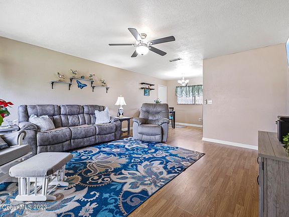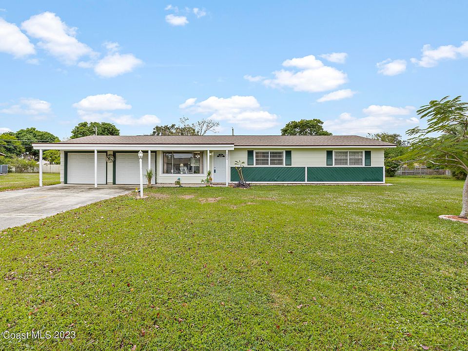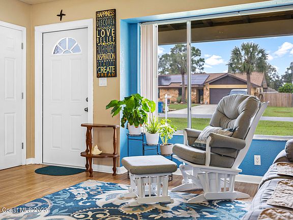 If you are looking for a great 3/2/2 home, in PRISTINE condition, on a HALF ACRE with a jaw dropping $25/mo electric bill thanks to SOLAR PANELS that do come with the sale, then you will want to add this one to your list of must see's! Perfect for someone looking to DOWNSIZE or even a FIRST TIME HOME BUYER. No HOA allowing you to park your RV with ease or STORE YOUR BOAT or other toys on this massive lot. Plenty of room for that pool you have been dreaming of. The OUTDOOR POSSIBLITIS are endless on this expansive haven. Home features a NEW ROOF 2023, sleek laminate and tile flooring throughout (NO CARPET,) spacious double HURICANE RATED garage doors, added PAVER PATIO, bathroom updates, one year old refrigerator, handy storage SHED and much more. Conveniently positioned near I-95, schools, shopping, and dining, this property offers everything you need and is ready for its new homeowners. You won't find another .5 acre lot and well-maintained home at THIS PRICE. Come check it out!