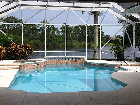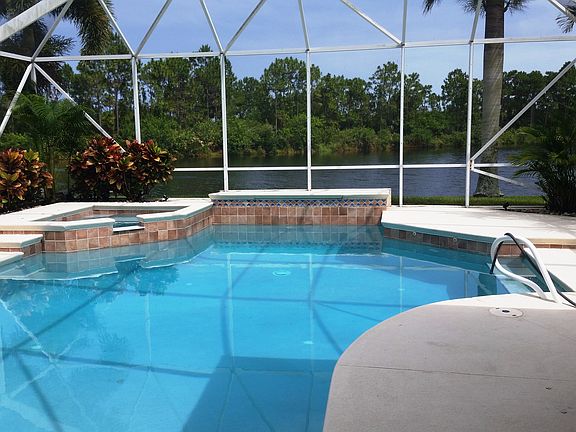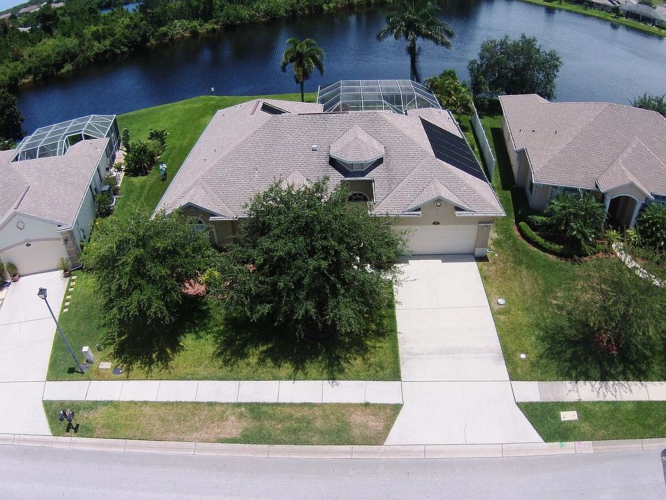 WOW! come see this breathtaking design which features a courtyard entry with stunning views, screened-in pool with spa overlooking the lake. Your thoughts will quickly envision how you’d like to decorate the entry. The main house offers a spacious open floor plan, tile throughout main living room area; an eat-in kitchen with stainless steel appliances, separate formal dining area. Hardwood floors in den/office and master bedroom. This design includes a separate guest suite with bath also with pool and lake views. The energy efficient pool is solar-heated and includes a gas heated spa, cover for the pool and safety fence. Many additional perks in this home including a huge walk-in master closet, master bath with double sinks, updated lighting fixtures and fans, new hot water heater, refrigerator approx 3 yrs old, and hurricane shutters, This lovely home is ready for you to move right in. Great location in the Oak Grove subdivision, close to shopping, schools, restaurants and the beaches. Call Stefanie at 321-200-0689 for more information.