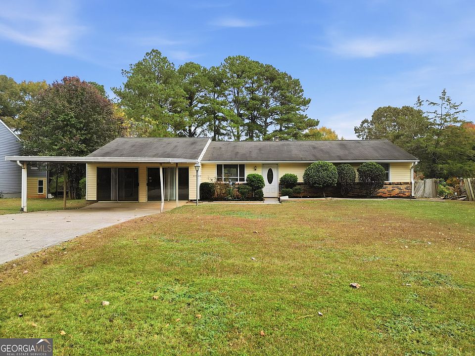 Fantastic ranch home just off Sandy Plains Road in Marietta. This 4-bed, 2-bath ranch is located in the highly sought-after Sprayberry school district. You'll walk into the main living space that combines the living room and dining room. The kitchen and laundry closet are tucked just behind the dining area. To the right, you'll find the bedrooms: a master suite plus two additional bedrooms sharing the other full bath. On the opposite side of the home, there is a separate family room with a fireplace for a cozy feel. A large bonus room could serve as a fourth bedroom. Other highlights include a level lot, covered back patio, and a two-car carport.