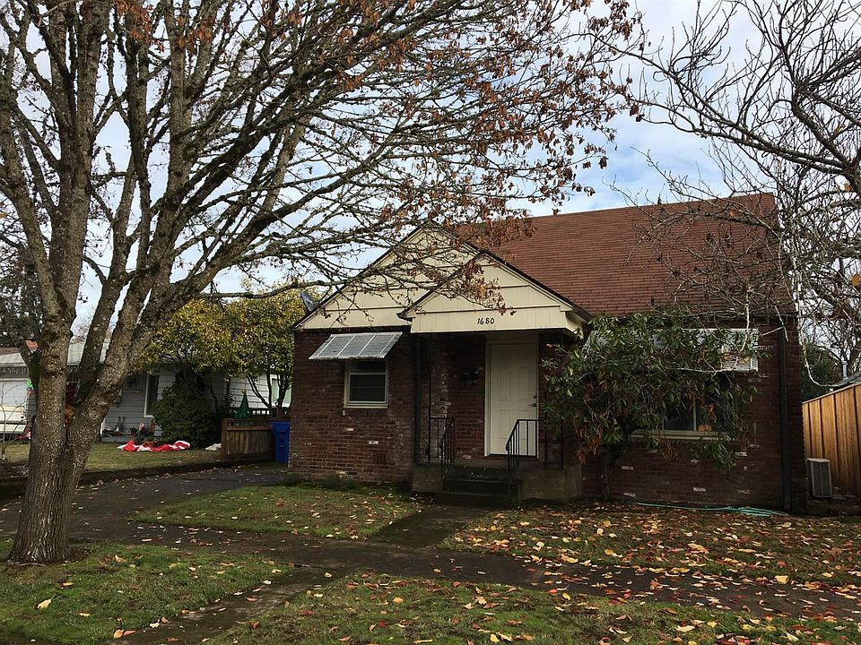 Interior fixer, needs updating. Large sunny yard for gardening or games. Garage and covered patio. Appliances included.