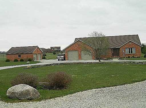 This 3 bedroom 2 full bath brick ranch is on 2 acres in the country. The open kitchen and family room share the fireplace and the sliders that lead to the composite deck. The great room has a two story ceiling and a wall of designer windows. A desirable floor plan has the master suite and a sitting room or office on one side and two family or guest bedrooms to the other. The two car attached garage is complimented by a fabulous brick outbuilding that offers another two car garage that opens to a 22'x19' workshop that has heat, hot and cold water and a 1/4 bath. Opportunity is knocking.