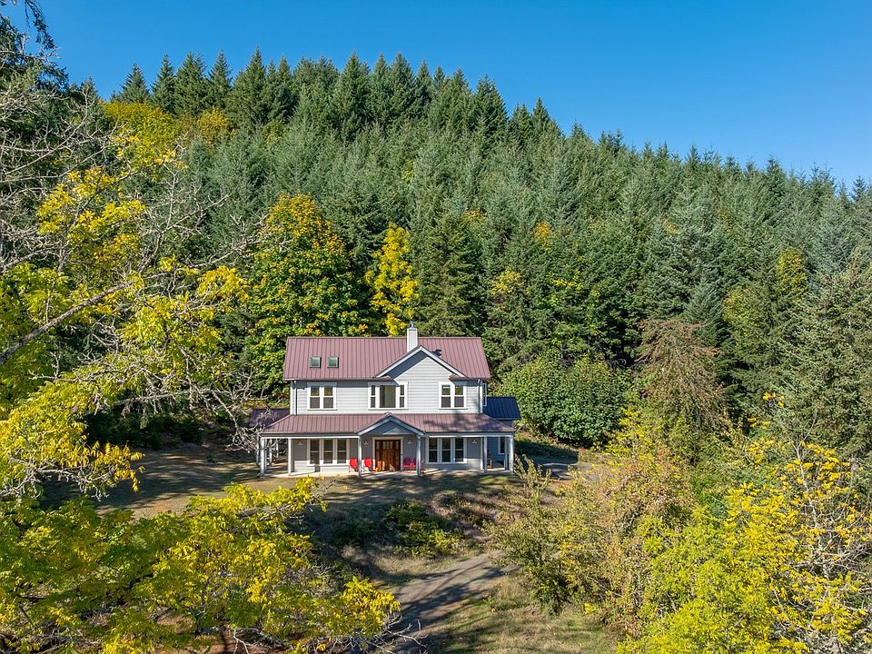A truly one-of-a-kind home on expansive private acreage. This classic farmhouse blends carefully curated antique pieces with modern convenience. The kitchen boasts a custom island made of doors from the original homestead and barn and is topped with a Thermador induction range and pop up exhaust. Other appliances include a Bosch dishwasher, Electrolux oven and a retro styled, Big Chill fridge. There is even a 2nd oven, GE Advantium 220v, which cooks faster than a traditional oven and is a microwave. From the dual headed fan to the enameled, cast-iron wood stove with griddle cooktop, the living room is the essence of cozy comfort. Claim your favorite seat and watch the seasons change beyond the generous windows. The office shares the living room’s gorgeous view of the valley, but unique to this room the open ceiling provides a glimpse of the library above. The closet is proportioned to accommodate horizontal file cabinets and includes a dual outlet for additional office equipment. A striking wood staircase delivers you to a panoramic view of the distant Cascades featuring Mt Jefferson. The owner’s suite features soaring ceilings, two closets (one walk-in), and an attached bathroom complete with an antique soaking tub and a walk-in tiled shower. The 2nd floor continues with thoughtful touches such as a centrally located linen closet, oversized washer and dryer, a sunny guest bedroom, and entrance to the library. The property benefits from tax deferrals for both forestry and agriculture made up of 25 acres of established Doug Fir and a lavender field. Future owners might consider other crops such as grapes (hobby vineyard), hazelnuts, or a Christmas tree farm to name a few. Buyer to perform due diligence.
