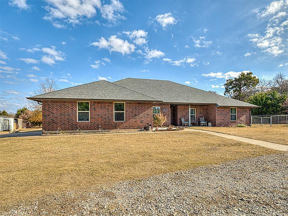 Nestled on 10.67 WOODED ACRES, this beautiful property offers both peace and privacy, while being only a few miles from Lake Thunderbird. The spacious home features an open floor plan, ideal for both daily living and entertaining.